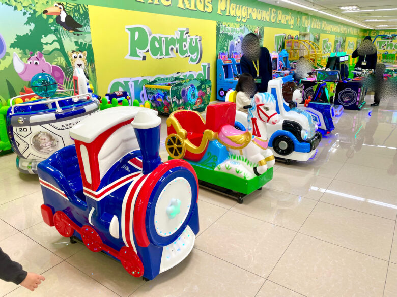 子どもがワクワクするようなトランポリンや滑り台、乗り物など身体をいっぱい動かして遊べる遊具のほか、何度でも遊べるフリープレイゲーム機などで遊べるようになっています。