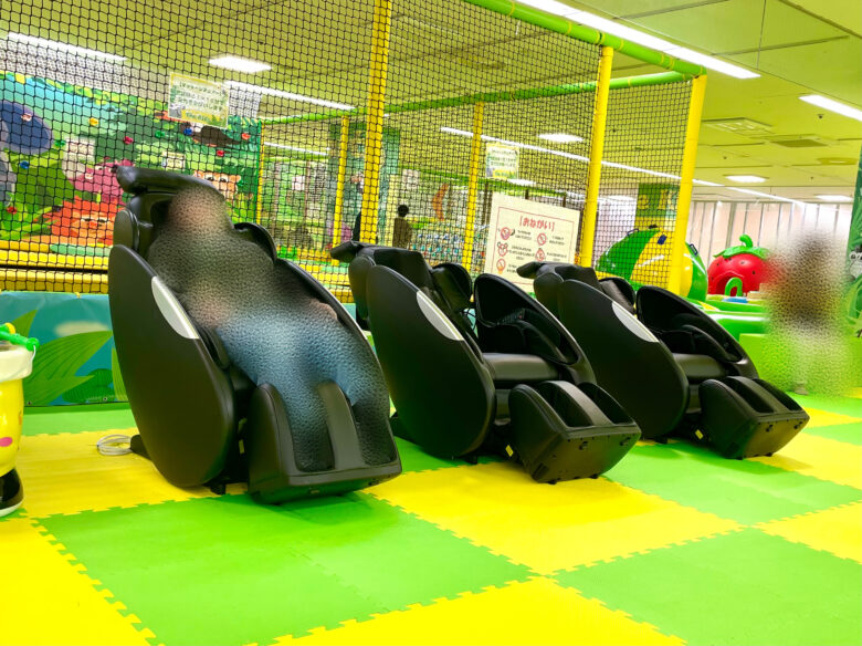 遊具だけでなく保護者に嬉しいマッサージチェアもあり、家族で一日中楽しめる施設になっています。
